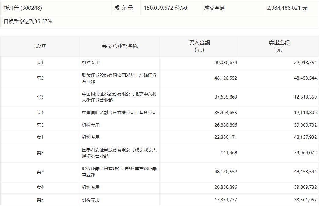 181 03-15 11:46新开普今日跌7.24%,有3家机构专用席位净卖出1.53亿元
